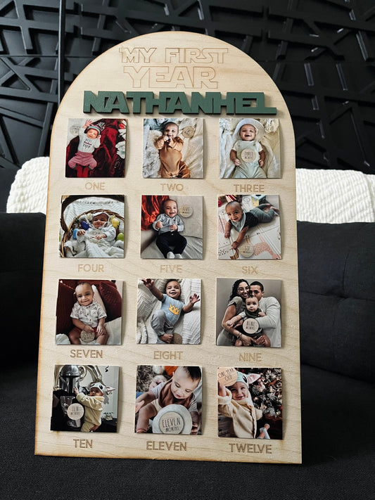 My 1st year Custom Photo Board My First Year Photo Board One Year Photo Board 1st Birthday Board Deco First Birthday 12 Months Photo Banner