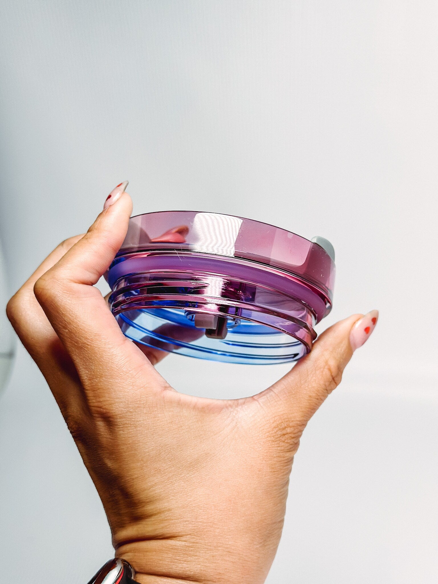 Elevate your 40 oz tumbler with our Black Chroma Lid, featuring a striking two-tone design in teal and purple. Perfectly matching the latest Chroma Tumbler release, this lid not only enhances the look of your drinkware but also ensures its functionality and durability.