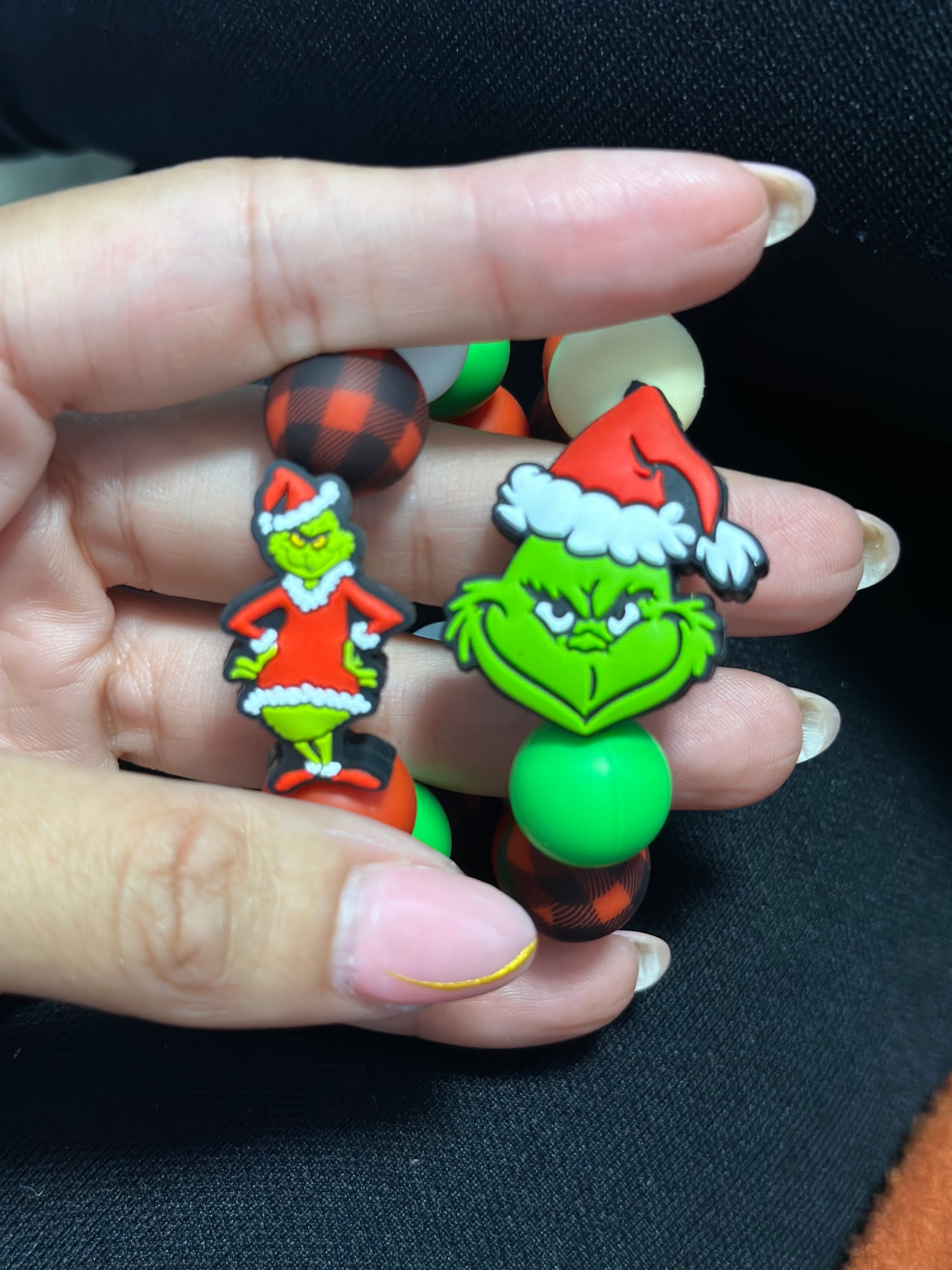 - **Design:** Includes Grinch, pink reindeer, and dog charms.