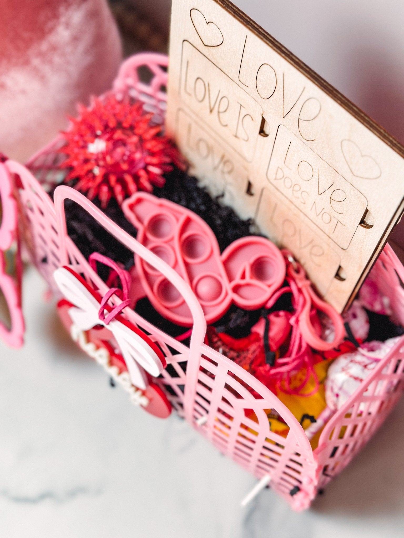 Love Basket Valentines Day Bag Medium Jelly Tote Trendy Retro Basket Valentine day Filled Jelly Purse Gift for my daugther 5th birthday