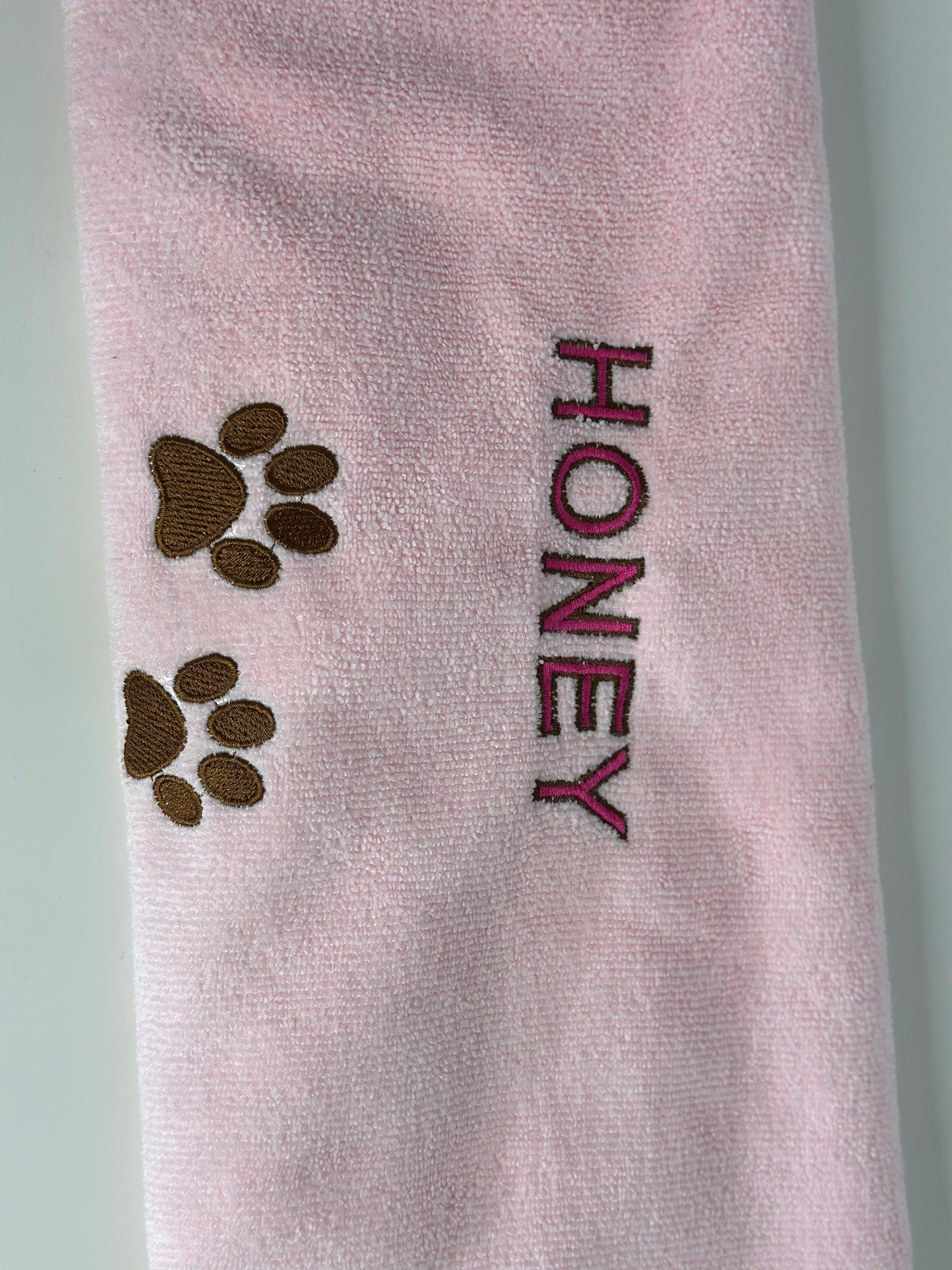 - Personalized Touch: The adorable paw print embroidery on the towel can be customized with your pet's name or any other text of your choice, making it a unique and thoughtful gift for pet owners.