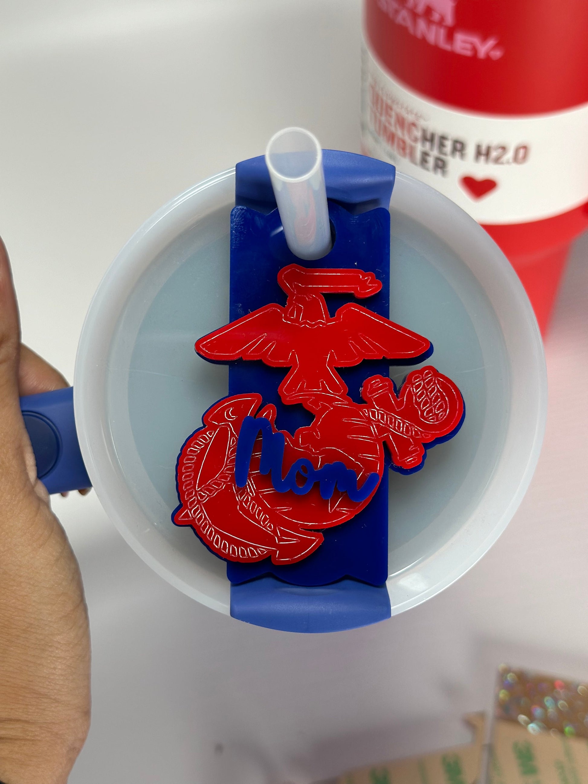 Personalized Tumbler Name Plate USMC Flag Stanley Name Tag For Topper Acrylic EGA Name Plate Quencher Name Tag Military wife Combo set