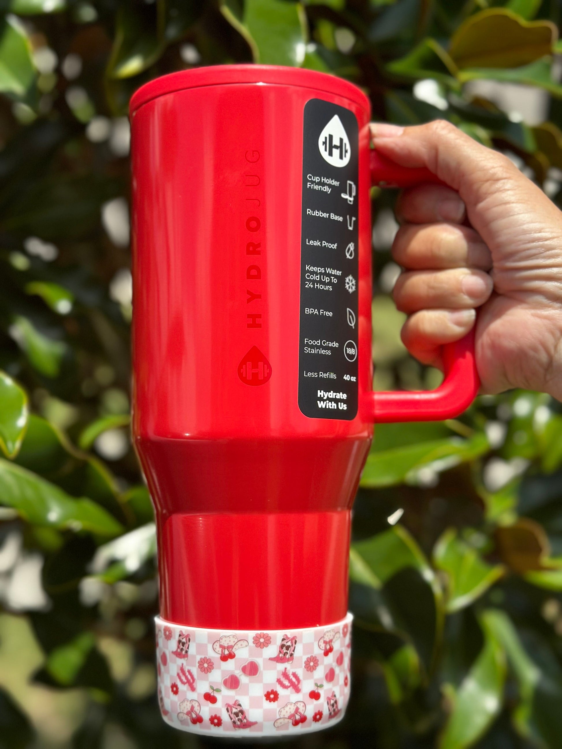 Add a touch of country charm to your tumbler with our beautifully designed cowgirl boot-themed tumbler boot. Featuring delightful cherry and bow patterns, this boot perfectly fits HydroJug, Stanley, and other popular tumbler brands, enhancing the look and providing extra protection.