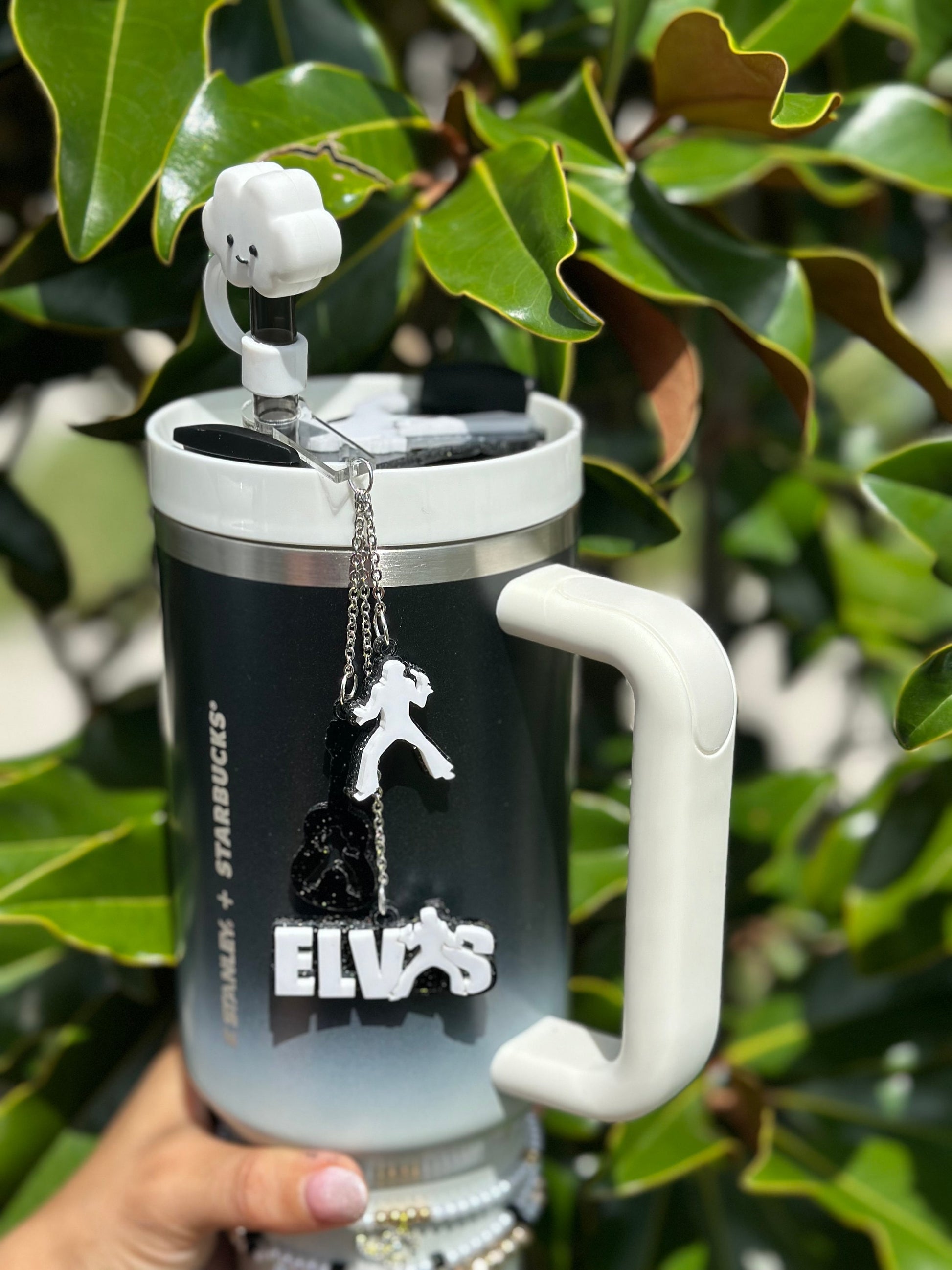 Add a rock and roll touch to your tumbler with our King of Rock and Roll Tumbler Topper and Charm Set. Perfectly designed for 20oz, 30oz, and 40oz Stanley tumblers, this set is a fun and unique way to make your drinkware stand out. Featuring the iconic silhouette of the King of Rock and Roll, this topper and charm set will have you rocking and rolling wherever you go.